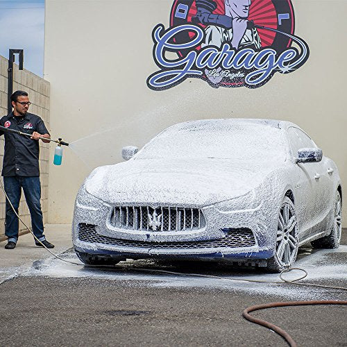 Details: Professional detailers and hardcore enthusiasts wash dirt from cars as gently as possible. The wrong touch pushes dirt around and grinds ugly scratches and swirls into the shiny finish. The torque professional foam cannon max foam 8 adds a blanket of super-slick and slippery car wash suds to lubricate any abrasive dirt particles. Prepare the torque foam cannon by filling the soap solution tank with water, then add 1 - 3 ounces of your favorite Chemical Guys car wash soap. Gently rinse down the car with water to remove any loose debris and grime, then attach the torque foam cannon max foam 8 and cover the car with soapy suds. Fine tune the soap mixture knob to the desired foam Thickness, and adjust the front fan nozzle to the perfect spread to quickly cover any vehicle. The bubbly soap begins to break down and lift stuck-on dirt and grime from the surface of the vehicle, surrounding it in slick car wash soap lubricants. As the foam slides down, it gently pulls the dirt to the ground before the detailer even touches the surface with a wash mitt. Add the torque professional foam cannon max foam 8 to any two-bucket car wash, and drastically reduce the chances of installing any swirls or scratches during any car wash or full detail.