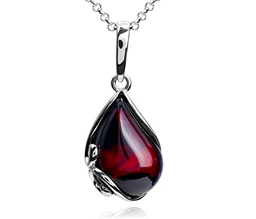 - Amber Jewelry Sterling Silver 925 Cherry Amber Necklace