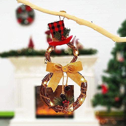Details: 100% brand new and high quality. Specifications: For the Snowman Wreath Size: As shown Color: as shown Material: burlap Battery needed: 2 AA batteries(Not included) Include: 1x Christmas Burlap Wreath 1 * Battery operated copper string lights