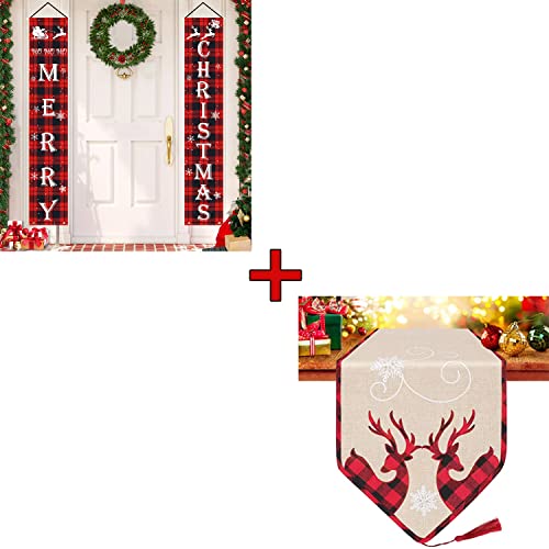 - 2 Items:Christmas Banner and Christmas Tabble Runner Together for Christmas Decorations.