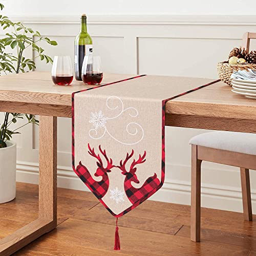 - Christmas Decor:To add more Holiday feelings,you may need our Christmas table runner.This burlap Christmas table runner is perfect for the Christmas season to decorate you tabletop for holiday family gathering.