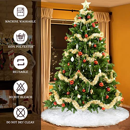 - 🎄[Make The Tree Skirt Your Pride Among Christmas Clearance]: Channeling the trim on Santa's white sleeves, our tree skirt cloaks the tree stand in plush white faux fur that looks and feels like real fur. Made of a 100% polyester, the tree skirt has a convincing effect that adds depth and dimension to its luxurious look and feel. Our Tree Skirts offers an exciting way to vamp up your Christmas tree and make it stand out against your friend's and family's trees for the most stylish tree around.