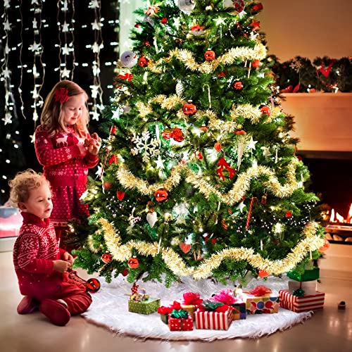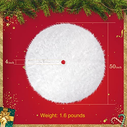 - 🎄[Don't Let The Thin and Rigid Skirts Ruin Your Tree Decorations] Carefully decorated your Christmas tree from top to bottom, be aware don't let the cheap tree skirts make your decorations fall short. Mimicking freshly fallen snow with the pure white, up to 2.5 inch thick yet ultra soft faux fur, Spornit Christmas tree skirt finish off your Christmas tree perfectly. Larger 50 inches tree skirt lights up your Christmas morning with indoor snowy scene, your smart choice to extend the atmosphere.