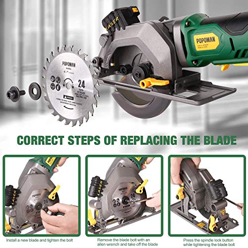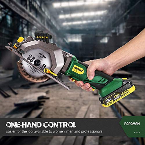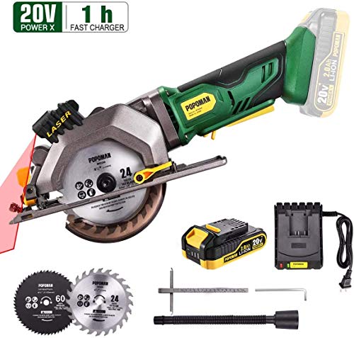 - ☘【GIFT IDEA & What you Get】It is the perfect gift for those who like to work with hands. 1 * POPOMAN-MTW80B Mini Circular Saw, 1 * TCT (115mm) Saw Blade, 1 * HSS (115mm) Saw Blade, 1 * 2.0Ah Battery, 1 * 1h Fast Charger, 1 * Parallel Guide Attachment, 1 * Elbow Dust Port, 1 * Instructions. ▲If you have any questions, you can contact our after sales staff.▲