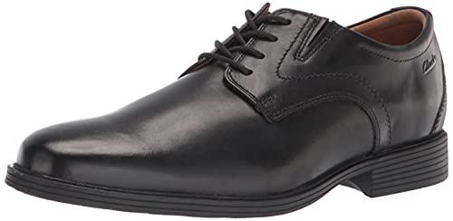 Details: Men's Clarks, Whiddon Vibe Oxford. This professional looking plain toe oxford offers a great fit with classy styling. You'll enjoy the cushioned comfort of this dress shoe style with a full-length Ortholite insole. Waterproof leather uppers with elastic goring panel for a flexible fit Four eyelet lace up closure for a secure fit Manmade and fabric lining Soft Cushion footbed by Ortholite for added comfort and support Low dress heel Lightweight TPR outsole