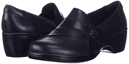 Details: Product Description A clean, classic design with walk-all-day comfort. Made from extra-soft black leather or synthetic animal print, the may marigold has stretch gore, fabric linings, ortholite footbed, tpr outsoles, and sculpted low heel. This women's shoe from the clarks collection defines easy wear ability. Slip it day or night on to add a cute finishing touch to jeans, skirts, or pants.How to measure your foot:Place your foot on a flat surface with your heel against a straight edge. Place a ruler beside your foot touching the straight edge your heel is also touching, then take the length in millimetres from the tip of your longest toe to your heel. Please be aware that your longest toe may not always be your big toe. From the Manufacturer From its humble beginnings in 1825 in the tiny English village of Street, Somerset, to a global company that manufactures and markets close to 35 million pairs of shoes a year, Clarks' commitment to comfort, quality, authenticity, and individual style has remained unchanged throughout the centuries.