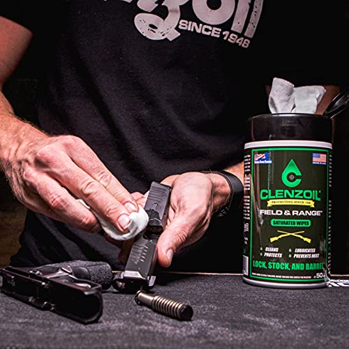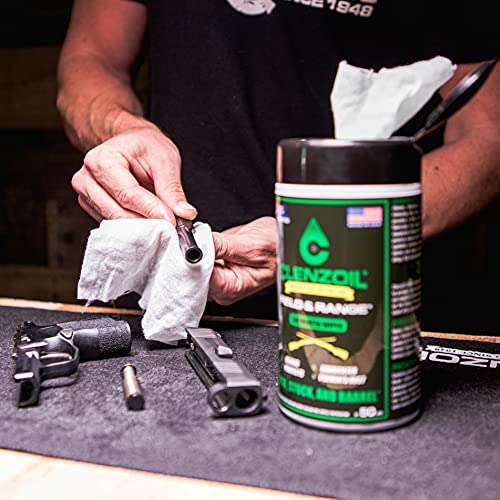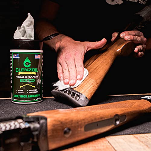Details: The same great Clenzoil field & range gun cleaning product in a one-step, easy to use, saturated wipe! The Clenzoil field & range saturated wipes are the ultimate one-step cleaner, lubricant, and rust preventative that take the guesswork out of gun cleaning. Great for a quick convenient wipe down in the field, The convenient and durable pop-up container keeps wipes moist and ready to go No matter what kind of conditions you might find yourself in. In one easy step, Clenzoil field & range will effectively remove oils, dirt, copper fouling, lead, plastic wad and other contaminants while simultaneously providing a thin, non-greasy coating that will prevent rust and lubricate all moving parts of firearms without getting "gummy" Or "snotty". Specifically formulated to be safe on all firearm surfaces, Clenzoil users can take comfort in knowing that their firearm will always end up running better and looking better after routine maintenance. Whether it be gun bluing, case coloring, gold inlays, camo coatings, synthetics, or wood stocks, Clenzoil field & range has got you covered. The Clenzoil field & range saturated gun cleaning wipes can also double as bore patches after being cut into appropriate sized strips as needed. Trust us, you're goanna want these in your range bag and blind bag.