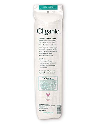 Details: Cliganic Premium Cotton Rounds (540 Count) | Makeup Remover Pads, Hypoallergenic, Lint-Free | 100% Pure Cotton