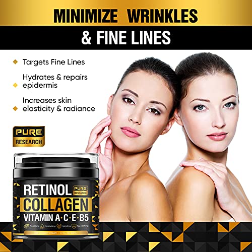 - Anti-aging moisturizer with retinol will help decrease the appearance of fine lines, wrinkles, crows feet, dark circles, puffiness. Collagen lotion tightens and firms skin and is great for sagging skin on your neck, face, hands, and decollete.