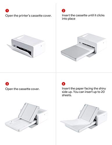 • Victure Photo Printer includes: instant printer with one ink cartridge, 40 sheets of photo paper, paper cassette, power adapter, power cord, user manual