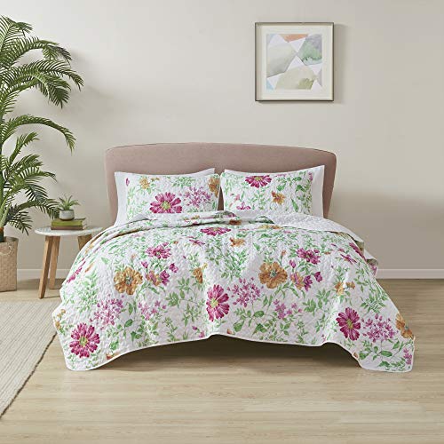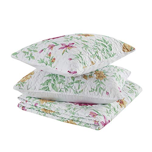 Details: The Comfort Spaces Marlene Reversible Quilt/Coverlet Set offers a shabby chic floral print to match your bedroom décor. Floral design featuring daisies in red, green and yellow adorns the face of the quilt and a solid white reverse complements the top of the bed for a femine while elegant look. The floral print sham coordinates with this comfortable bedding set to complete the chic ensemble. Fully transform and revitalize your bedroom with this environmentally safe antimicrobial microfiber that reduces bacteria build up to prevent odors so the fabric stays fresher longer. SERVICE - If you don't absolutely love this product, return it within 30 days for a full refund. We'll work with you to resolve any issue and ensure that you're satisfied with your experience.
