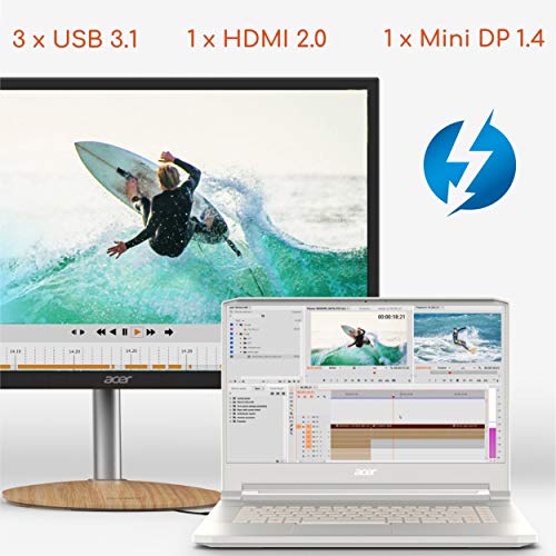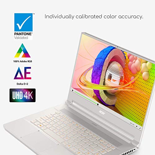 Details: ConceptD 7 CN715-71-73A9 Creator Laptop comes with these high level specs: 9th Generation Intel Core i7-9750H 6-Core Processor 2. 6GHz with Turbo Boost Technology up to 4. 5GHz, 15. 6" 4K Ultra HD (3840 x 2160) widescreen LED-backlit IPS display, PANTONE Validated, Delta E <2, 400nit Brightness, 16: 9 aspect ratio, 100% Adobe RGB Color Gamut, Acer ColorBlast Technology, NVIDIA GeForce RTX 2080 with MAX-Q Design & 8 GB of dedicated GDDR6 VRAM, RTX STUDIO, 32GB DDR4 Dual Channel 2666MHz Memory, 1TB PCIe NVMe SSD, Backlit Keyboard, Waves MaxxAudio sound technology, featuring MaxxBass, MaxxVolume, MaxxDialog and hyper-realistic 3D Audio using Waves Nx, Acer TrueHarmony Technology, Two Built-in Stereo Speakers, Acer Purified. Voice technology with two built-in microphones, Killer Double Shot Pro Wireless-AC 1550 802. 11ac WiFi featuring 2x2 MU-MIMO technology (Dual-Band 2. 4GHz and 5GHz), Killer Ethernet E3000 10/100/1000 Gigabit Ethernet LAN (Up to 2. 5 Gbps), Bluetooth 5. 0, HD Webcam (1280 x 720) supporting Super High Dynamic Range (SHDR), 1 - Thunderbolt 3 (Full USB 3. 1 Type C) Port, 3 - USB 3. 1 Gen 1 Ports (One with Power-off Charging), 1 - HDMI 2. 0 Port with HDCP Support, 1 - Mini Display Port 1. 4, Windows 10 Home, Lithium-Ion Battery, Up to 8-hours Battery Life, 4. 63 lbs. | 2. 1 kg (system unit only) (NX. C4KAA. 001)