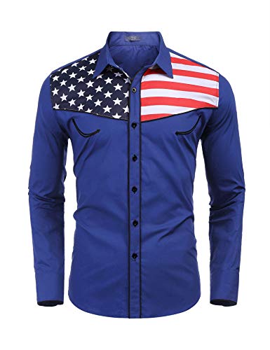 - Fabric-High quality skin-friendly fabric, USA flag trendy western cowboy button down shirts make you handsome and cozy.