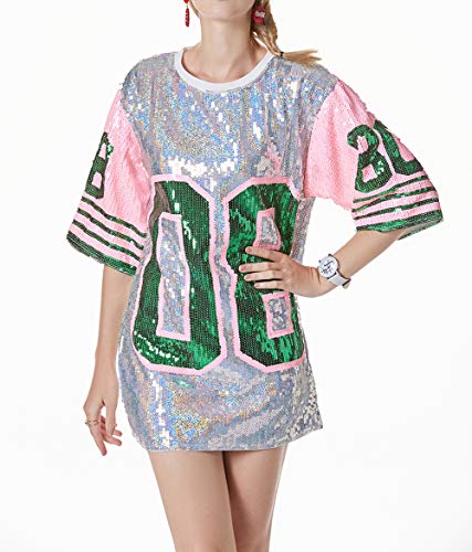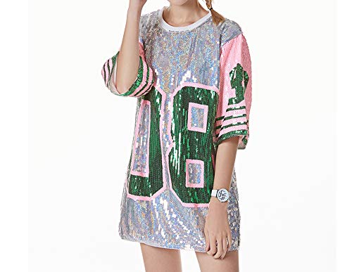 - Loose fit sequin-embroidered mesh T shirts/mini dress with sleeve