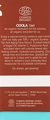 Details: Product Description Our Sunless Tan Anti-aging Face Serum, which gives you the glow of a weekend spent in Cabo with the skin-protecting benefits of natural anti-agers and vitamins. Brand Story At COOLA, we're passionate about creating happy, healthy lifestyle experiences. We believe that clean beauty should feel as good as it is healthy, which is why we develop organic products that you'll love wearing every day.