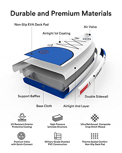 - Premium Material: COOYES inflatable stand up paddle board is made of the highest quality military grade material. Max load is up to 330lbs, no need to worry about scratches or damage.