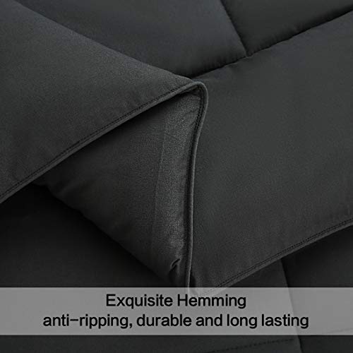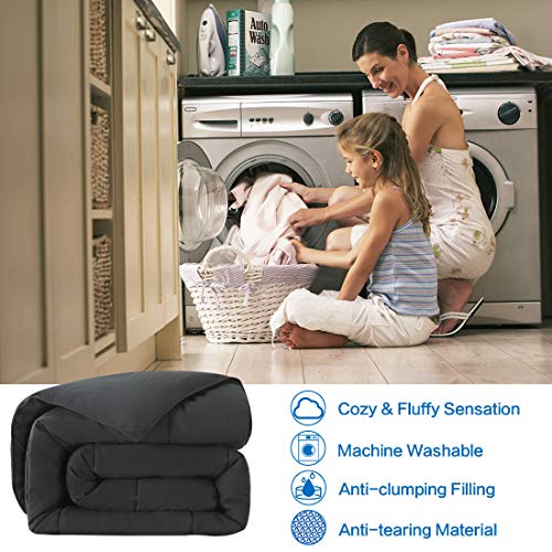 Details: CONVENIENT TIE FASTENERS ✅ Loops in each corner of the comforter make it easy to secure inside a duvet cover. Piping along the edges and a baffle stitched construction prevents the comforter from shifting inside a duvet cover. ✅ Our classic box pattern with strong piped edges creates walls between top and bottom layers preventing polyester filling from clumping and shifting. The filling also remains evenly distributed over you, providing a uniform cloudy surface for a blissful sleep in any climate. WHAT IS MICROFIBER? ✅ Microfiber is a high-density polyester with extremely fine fibers that make it lightweight yet durable. These fibers give a pleasant feel against the skin while remaining breathable and cool, while its intense density makes its completely resistant to wrinkling and fading. Thick, resilient microfiber filling inside the comforter stays fluffy, and is encased by a double brushed microfiber shell. ✅ In short, not only does this fabric keep you warm and cozy, it ensures long term use by retaining its shape and softness over time, and won’t make you sneeze.