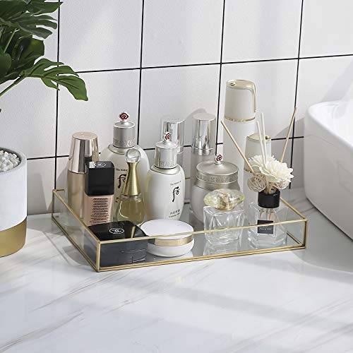 - IDEAL MIRROR TRAY: Clear design of gold decor tray, gold mirror tray, jewelry holder tray, helps you reduce countertop clutter, makes organization clear at a glance.