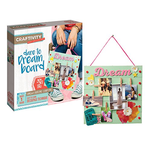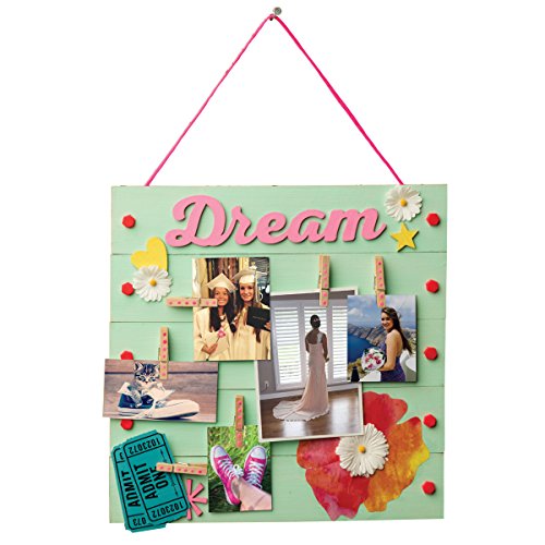 Details: Dream, desire and inspire. This is the perfect place to capture your own personal vision. Collect and display all things uniquely you. Wooden planks come ready to assemble and paint. Arrange the clothes pins and sweet embellishments to suit your style. Learn Decoupage art and complete your mixed media look. Girl, you got this! includes all the hanging cord and assembly hardware needed to create an 11 ¾" square inspiration board. Ages 12+.