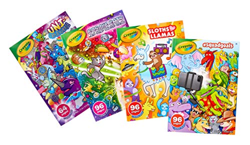 Details: Some coloring books stand out from the pack and this 4 pack holds some of the most unique, most creative, and most loved Crayola coloring books for kids. In this set you will receive 1 uni-creatures coloring book, 1 cosmic cats coloring book, 1 sloths love llamas coloring book, and 1 #Squadron coloring book. It's a great gift for boys and girls, with sticker sheets, as well as 96 Creative and unusual coloring pages in every book. Split up the set to have gifts on hand for birthdays, holidays, and everyday gifting opportunities.