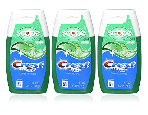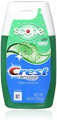 Details: Get seriously fresh with Crest Complete Whitening plus Scope Toothpaste. This powerful paste cleans teeth and freshens breath so effectively, you can even skip the Scope! Crest Complete combines the cavity and tartar-fighting efficacy of a fluoride toothpaste with Scope mouthwash, for a whole mouth clean and breath that's kissably fresh. Its whitening capabilities are so robust, teeth are visibly whiter after just one tube. The liquid gel toothpaste formula gently lifts away food particles along the gumline and between the teeth as it infuses teeth and gums with a refreshing minty flavor that invigorates with every brush. This special value pack includes two tubes of Crest Complete toothpaste; each tube contains 4.6 oz. A single unit can be purchased as well, for added convenience.