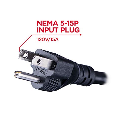 - SIX NEMA 5-15R OUTLETS: Four battery backup and surge protected outlets; Two Surge protected outlets; INPUT: 15A, NEMA 5-15P straight plug with 10 foot power cord