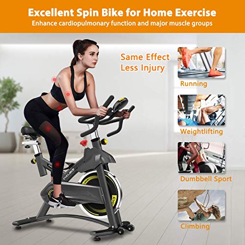 - 💪EFFECTIVE EXERCISE BIKE- More down at less time. Cycling can burn fat quickly, build core muscles and strengthen heart, but reduce injuries. Multi-grip handlebar, with adjustable resistance, our spin bike meets the needs of beginners to professionals.