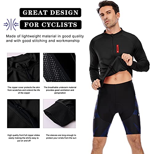 - [Absorbing Sweat and Cool Dry] The long sleeve bicycle jersey is made of moisture wicking, breathable fabric and special mesh design in sides, which will dry quickly, reduce itchy and sticky skin caused by sweat accumulation under the road bike tops and control unpleasant smell for you