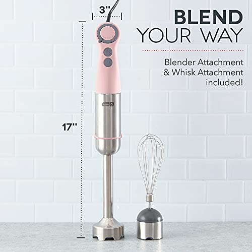 - INCLUDES: Dash Chef Series Immersion Hand Blender, Blender Stick Attachment, Whisk Attachment, and Recipe Guide.