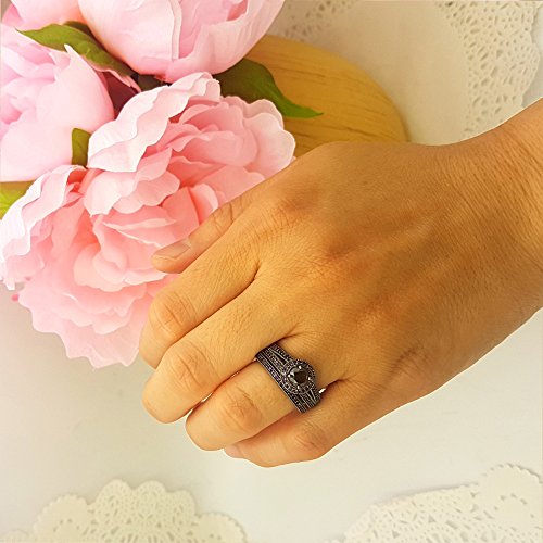 Details: This lovely engagement Ring Set featuring black diamond & amethyst in halo setting. All stones are sparkling and 100% natural. All our products with FREE gift box and 100% Satisfaction guarantee. The Black Diamonds may have one or two small chips and or white spots. The black diamonds in this item are semi-faceted and natural. These black diamonds qualify as rose-cut or diamond accents. The black diamonds in this jewelry item are of not of gem quality, and contain varying number of facets from 0 to 16. Natural black diamonds are rare. Dazzlingrock sells only heat treated black diamonds, treated with the High Pressure Heat Treatment (HPHT) method. In HPHT treatment, diamonds are heated to approximately 1260 degrees, and the diamonds become black. HPHT treatment is completely safe and permanent. SKU # DR4611-1770-BP-10KW