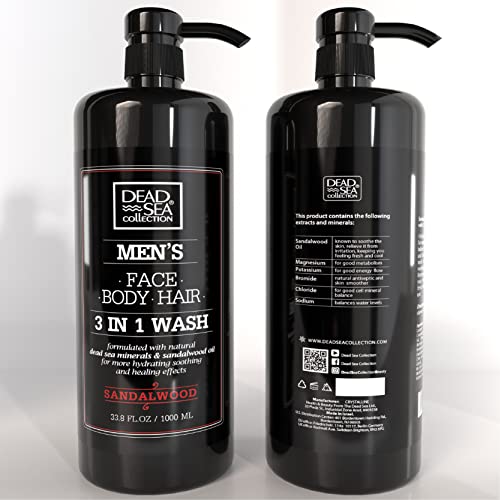 Details: Sandalwood Mineral Face/ Hair & Body Wash with Dead Sea Minerals is a cleansing wash that removes dirt and impurities without drying the skin. Body Wash removes dirt, oil, and other impurities that accumulate throughout the day. The gentle formula leaves skin feeling soft, clean, hydrated and soothed. Infused with Natural Dead Sea Minerals to help nourish the skin, this body wash contains the following Oils and Minerals: Sandalwood oil known to soothe the skin, relieve it from irritation keeping you feeling fresh and cool. Magnesium: for good metabolism. Potassium: for good energy flow. Bromide: for natural antiseptic and skin smoother. Chloride: for a good cell mineral balance. Sodium: for a balance of water levels. For optimal results, we recommend using our Macadamia 100% Natural Dead Sea Bath Salts. This combination was created to help keep your skin nourished and protected from everyday wearing. Our Dead Sea Collection products are available for your skincare needs as well as your bath and body care. Our products are not tested on animals, have a shelf life of 24 months from opening, and are all packaged in recyclable jars and bottles. men shampoo and body wash, body wash for men, men body wash, men shampoo, shampoo for men. body wash for men, dead sea for men, men body wash, men body wash pump, men body wash set, men shampoo, men shampoo 3 in 1, men shampoo and body wash, mineral body wash men, shampoo for men