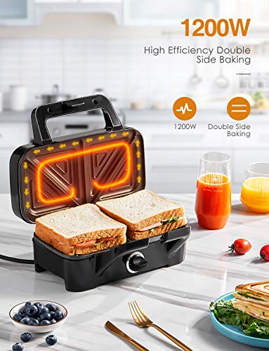 - ✅ 3 in 1 Sandwich Maker with Non-stick Coating - offers 3 removable grill plates (sandwich, waffle and grill plates). Perfect for classic sandwiches, waffles, barbecue steaks, etc. High-quality non-stick coating, water and oil repellent, easy to clean. LED indicator (red light is always on, preheating or heating is completed, green light is off).