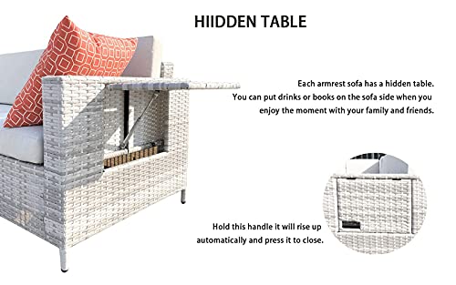 - MODULAR OUTDOOR SECTIONAL SOFA– Each piece can be rearranged in various ways to meet your different needs. The cushion is thick and water-resistant. Providing the ultimate comfort for you and with a hidden table so you can put your drinks or magazines on it when you enjoy the moment with your family and friends.