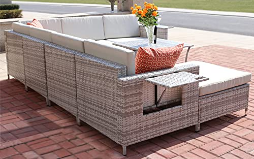 - DURABLE – This 8 pieces patio sectional sofa set made with all-weather, high density, PE wicker. Strong rust-resistant steel frame for durability. Perfect for outdoor use in all climates which is ideal for your garden, patio, and backyard in your house to be a perfect additional decor.