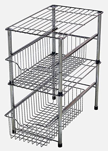 Details: Organize any cabinet with this convenient sliding basket organizer. Its design makes it perfect for the pantry, under the sink or on your countertop. It has an attractive metal chrome construction and lift-out baskets with easy to carry handles.