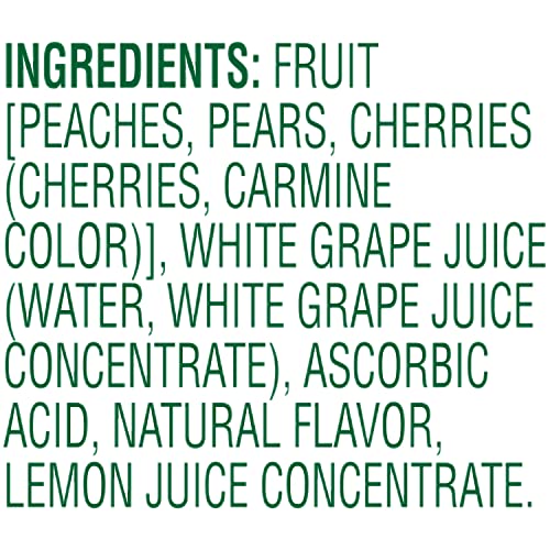 - Enjoy delicious bite-sized peaches, pears, and cherries in 100% real fruit juice for a tasty on the go snack