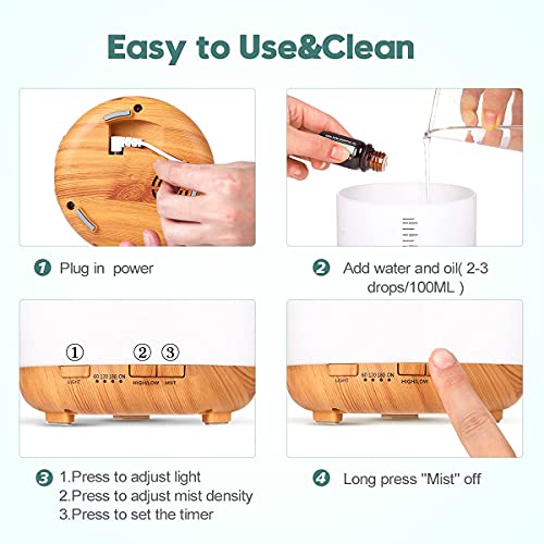 - âăGREATLY IMPROVE AIR QUALITYăOur room diffuser is not only uses in aromatherapy, also functions as a humidifier.It helps add moisture into the air, great for large room,especially when the air is dry, in allergy season, or when sick,it will be your essential part of a good night's sleep .