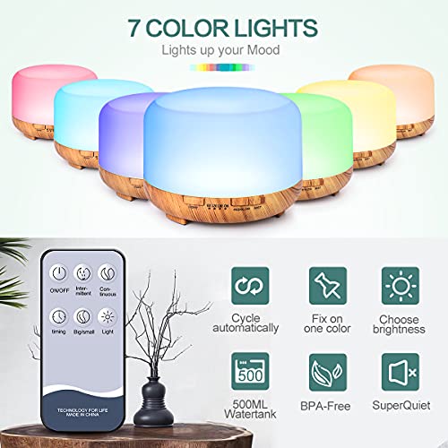 - â˛ăEASY TO USEăThe difusor essential oil built with a smart control system. You can use it very easy with 4 timer setting & REMOTE CONTROL.In addition,when timeâs up or water runs out, it will auto shut-off.And essential oil diffuser with oils set included high-quality PP material that is resistant to damage.