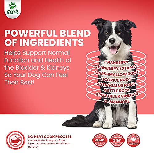 - Helps Support Normal Function and Health of the Bladder & Kidneys So Your Dog Can Feel Their Best: Each tasty soft chew is loaded with powerful active ingredients. In addition to cranberry and cranberry extract, each soft chew contains Marshmallow Root, Licorice Root, Astragalus Root, Nettle Root, Apple Cider Vinegar for dogs, and D-Mannose. Our formula helps maintain normal urine pH, promotes normal kidney detoxification, and supports friendly bacteria in the urinary tract.