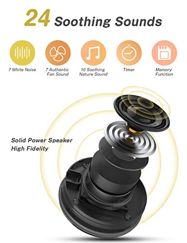 - [HIGH FIDELITY & LOOP-LESS 24 SOUNDS] - This solid sound machine creates relaxing and sleep atmosphere by offering exquisite listening experience. Dreamegg white noise machine has 7 white noise, 7 fan sounds, 10 relaxing natural sounds (Bird, Sea Wave, Brook, Lullaby, Music Box, Cricket, Campfire, Rain, Fetal Tone, and Train sound for soothing your baby). Select the perfect channel and get ready for your personalized sleep therapy!