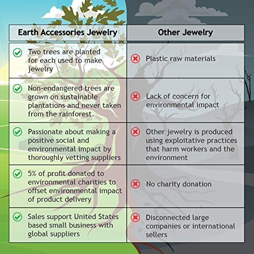 - 5% of net profit is donated to environmentally focused charities. This jewelry is handmade, incorporates organic natural materials, and is produced using sustainable practices.