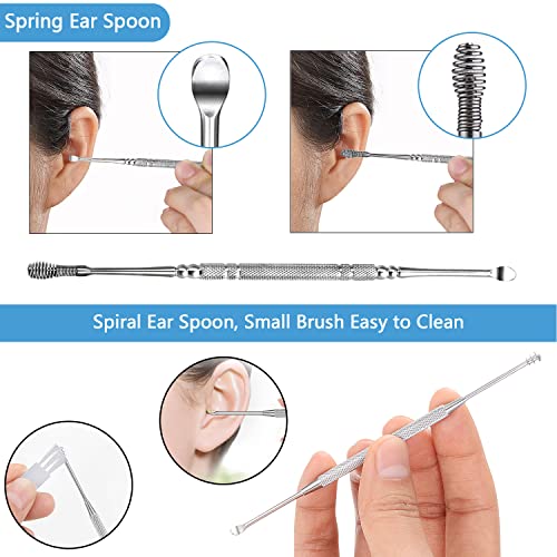 - DOUBLE ENDED EAR SPOON : Includes 2 double-ended earpicks with unique spring and spiral design, that can effectively relieve itching and massage the ear canal while cleaning. Skid resistant ergonomics design, easy to control and more safe