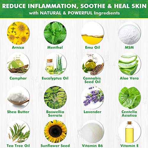 - REDUCES INFLAMMATION & SWELLING, SOOTHES & HEALS SKIN - Our anti inflammatory cream is enriched with Emu Oil, MSM, Aloe, Boswellia, Tea Tree Oil, Lavender, Sunflower Seed Oil, Centella and Vitamin B6 to reduce the inflammation of nerves, muscles, tendons and ligaments