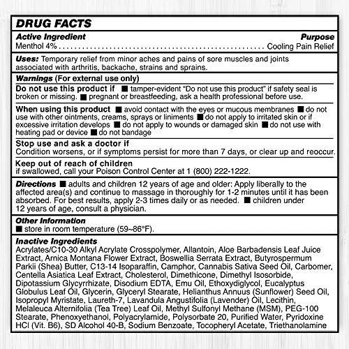 - INTENSIVE COOLING & HEALING THERAPY WITH LIGHT REFRESHING MINTY SCENT - Great for back pain relief, arthritis pain relief, neck shoulder pain relief, joint pain relief, muscle pain relief. Our products never tested on animals - Cruelty-Free, cGMP Certified, Hypoallergenic, Paraben-Free, Sulfate-Free