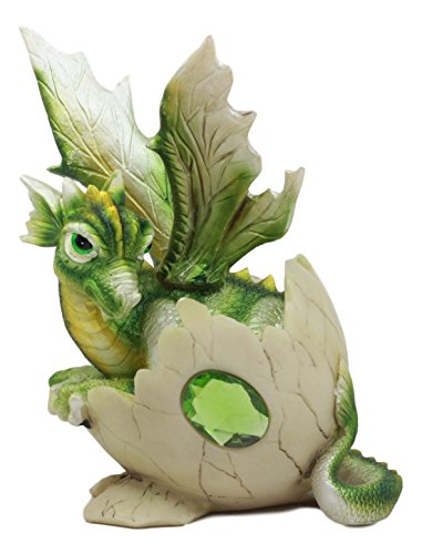 Details: This August Birthstone Dragon Egg figurine stands at 5" tall, 3.5" wide and 3" deep approximately. This August Birthstone Dragon Egg figurine is made of designer composite resin, hand painted and polished. This is a Birthstone Dragon figurine for the Month of August (Peridot). We feature all 12 birthstone months in the form of Dragons In Their Eggs. It is a symbolic collectible because dragons are associated with Power and Sheer Potential. The hatching dragon symbolizes our rite of passage from baby to adulthood. We are born with a dragon spirit inside of us.