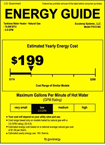 Details: The incredibly efficient Eccotemp FVI-12 Natural Gas Tankless Water Heater uses an intense gas-fired flame to instantly heat water the moment it passes through the unit, so as long as you feed water in, hot water will come out! Comes ready to install. With the included horizontal vent kit, this Eccotemp FVI-12 Natural Gas Tankless Water Heater can be installed for indoor use right out of the box. Great for cabins and smaller homes, so you don't bust your budget for a hot shower! The Eccotemp FVI-12 Natural Gas Tankless Water Heater is a manual water heater. This means that any water temperature adjustments must be made at the face of the unit using the knobs for water flow and gas pressure. Mixing cold water at your output source is not recommended. Have questions? Contact support at 1-866-356-1992 or support@eccotemp.com