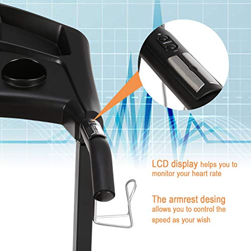 - Perfect shock absorption system and multi-layer rubber running belt(17 ‘’ wide) provide excellent noise-free running experience and offer safe cushioning for your back, joints, knees and ankles.
