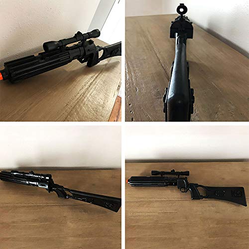 Details: This is a made to order Star Wars Custom Boba Fett's EE-3 Carbine Rifle Prop. This blaster is assembled from a 3-D printed PLA plastic and is then weathered. We even offer a version with war torn rags and I take the time to add a high gloss metal effect through out the blaster to make it look like the original prop. I also add tally marks to give it a used feeling. The unfinished kit option is for a printed set of parts which you can assemble and paint on your own. The EE-3 carbine rifle was a model of blaster carbine manufactured by BlasTech Industries. They were used by the bounty hunters Sugi during the Clone Wars and Boba Fett during the Galactic Civil War. In addition to the carbine's usage by bounty hunters, it was also used by troopers of both the Alliance to Restore the Republic and the Galactic Empire. It was an optically fitted blaster rifle capable of three-round burst fire at long ranges, but had lower accuracy and stopping power compared to larger rifles. The results may vary slightly from item to item since this is a made to order product. PLEASE KEEP IN MIND WHEN ORDERING THAT THIS ITEM TAKES 2-6 WEEKS TO COMPLETE DEPENDING ON HOW BUSY WE ARE.
