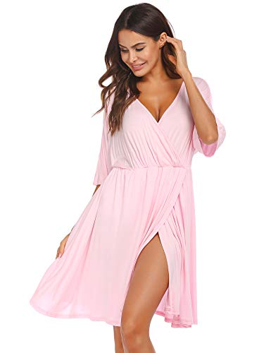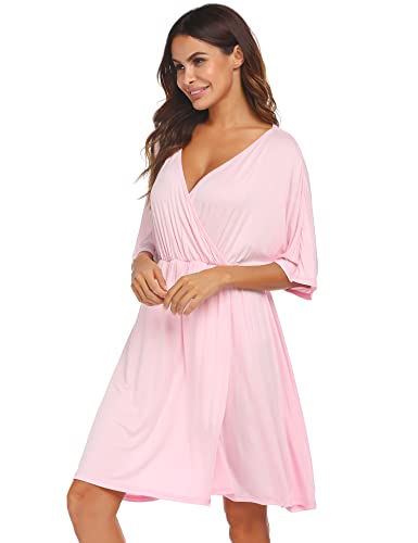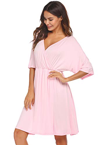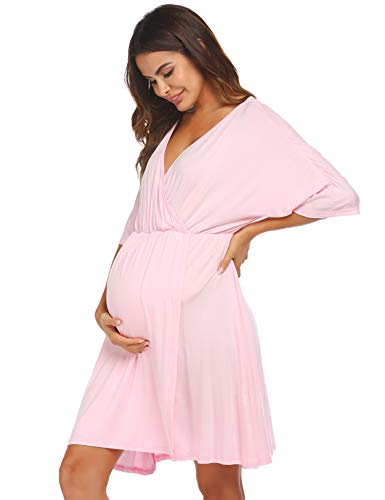- ❤3 in 1 -Labor and Delivery Nightgown - The V Neck Nursing Nightgown is easy to breastfeeding and open bottom folds, it will be the good choice for short sleeves labor/delivery gown and outside wear during pregnancy and after pregancy.