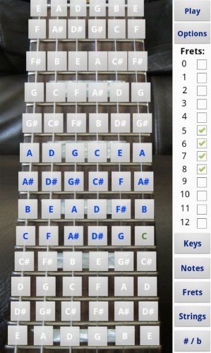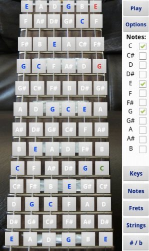 - Notes -You will learn the fretboard by Note, by Position, by String, by Fret, Forwards, Backwards, and Randomly. The ear training mode and standard music notation displayed will help you learn to recognize notes, pitch, and intervals.